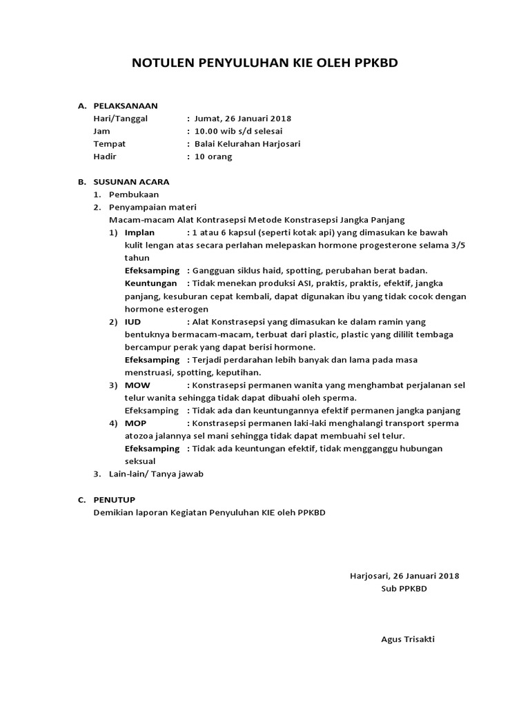 Contoh Notulen Tentang Kb / Saat melakukan rapat, salah satu hal yang tidak boleh dilewatkan yaitu membuat notulen rapat.