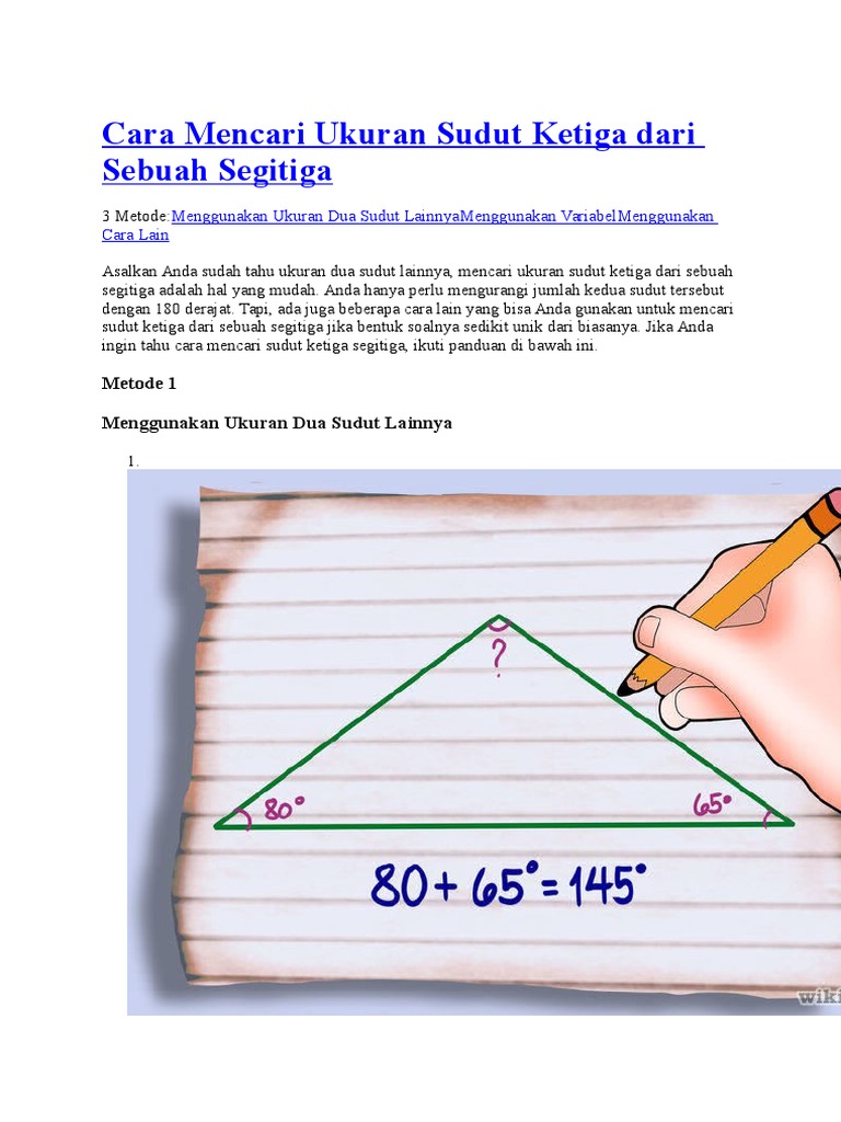 Anda juga perlu mengetahui maklumat lain, seperti kawasan atau beberapa sisi atau sudut. Jumlah sudut dalam segitiga adalah 180 derajat. Oleh daro jattin posting komentar. Dalam formula ini, n mewakili bilangan sisi poligon. Α ialah sudut antara sisi dan asas yang sama;