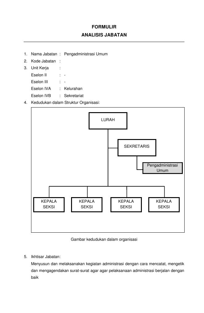 Contoh informasi yang didapat dari analisis jabatan adalah uraian jabatan, syarat jabatan, berat ringannya pekerjaan, besar bab ii perumusan masalah berdasarkan uraian latar belakang diatas, maka dapat dirumuskan sebagai berikut : Analisis jabatan (job analysis) adalah suatu cara, prosedur dan kegiatan yang dilakukan untuk mengumpulkan dan menganalisi informasi tentang pekerjaan, berupa: Apa hasil dari analisis jabatan? Sebagai tindak lanjut dari analisis jabatan/pekerjaan. Analisis jabatan adalah proses pengumpulan, pencatatan, pengolahan dan penyusunan data jabatan menjadi informasi jabatan.