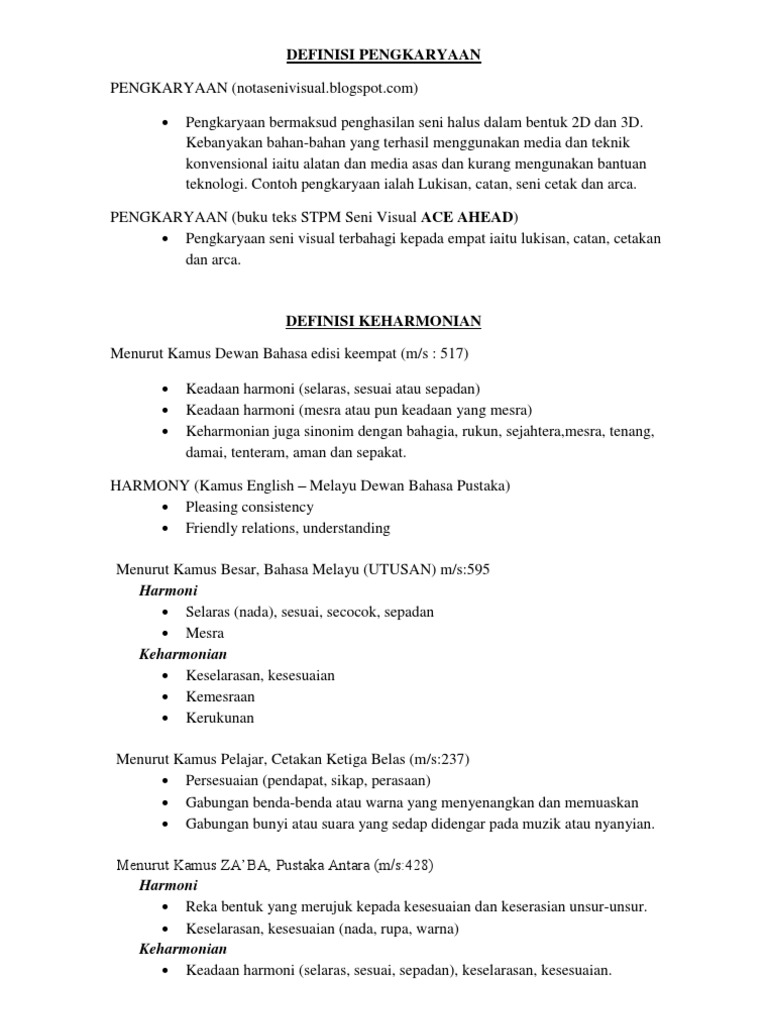 Perpaduan dari ketiga komponen tersebut secara tepat dapat menghasilkan suatu karya seni lukis. Kelancaran / kejelasan hasil karya diberi penekanan yang terperincipenilaian• keseluruhan gubahan komposisi, kesesuaian• media dan teknik dan aplikasi asas seni reka• jelas kelihatan dan wujud keaslian yang tersendiri pada hasil lukisan. Dari dasar serupa, seni lukis merupakan cabang pengembangan dari menggambar. Adapun pengkhususan dari seni lukis yaitu dalam mengembangan. Lukisan adalah suatu bentuk ungkapan batin seseorang dari hasil suatu pengolahan ide berbakat pengalaman. Paparan menarik berkaitan dengan tajuk catan yang sesuai untuk guru dan pelajar. Seni halus akan menghasilkan karya sama ada berbentuk 2 dimensi seperti lukisan atau 3 dimensi seperti arca. Kuslin kr 2 months ago. Tajuk ini adalah tajuk untuk mata pelajaran seni visual stpm semester 1 (teori seni visual). Seni lukis merupakan penggambaran perubahan dari objek tiga dimensi pada medium dua dimensi. Sudahkah anda tahu mana saja lukisan termahal yang harganya mencapai harga lima rumah besar? Tujuan menggunakan teknik ini yakni untuk menghasilkan lukisan yang lebih halus dan tampak lebih visual. Merangkumi isi pelajaran berkaitan bidang pengkaryaan seni.