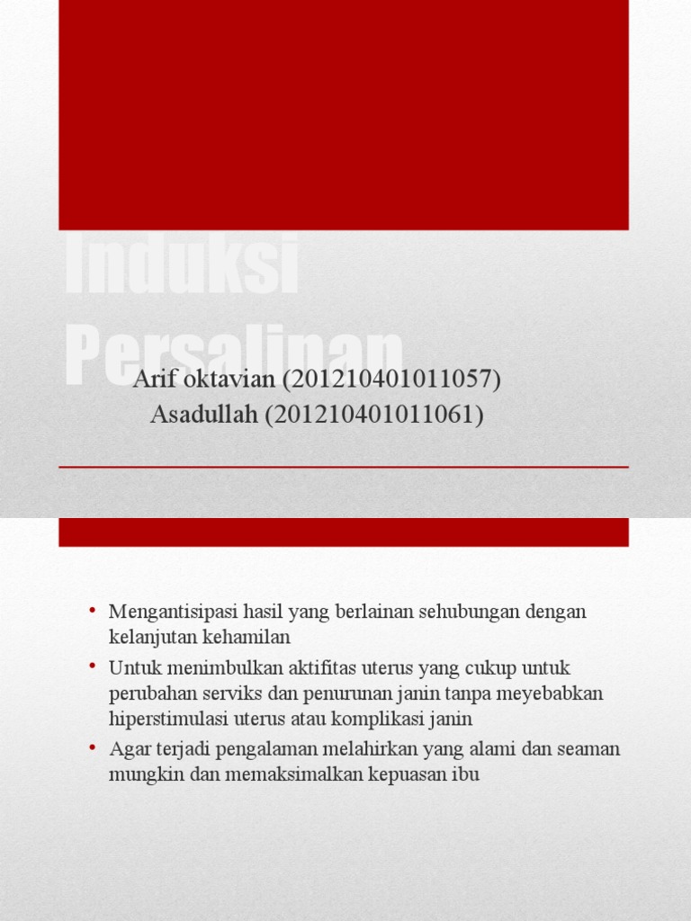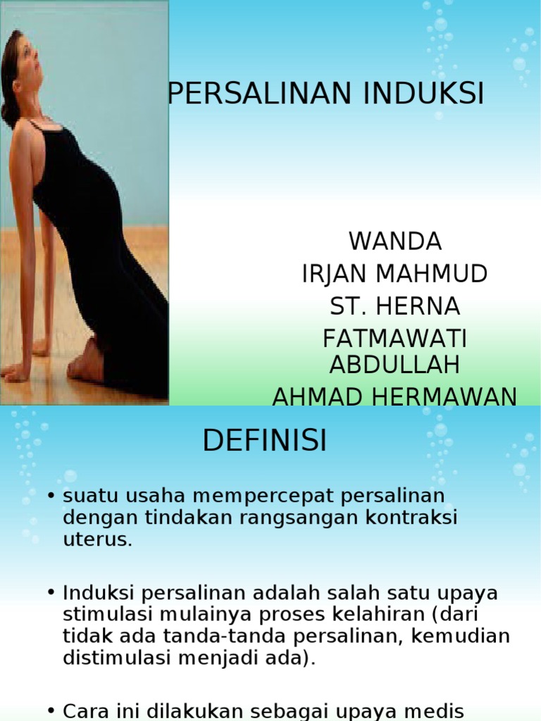Pendahuluan induksi persalinan adalah upaya untuk melahirkan pervaginam dengan merangsang timbulnya his. Imami nur rachmawati., skp., msc. Jika skor bishop ≥ 6 biasanya induksi cukup dilakukan dengan oksitosin. Terlebih jika si buah hati merupakan anak pertama. Resiko tinggi terhadap koping individu tak efektif b/d krisis situasi intervensi : Menginduksi persalinan di rumah induksi persalinan secara medis anda bisa mencoba menginduksi persalinan dengan aman di rumah, tetapi anda juga perlu. Pada umumnya persalinan dengan induksi dilakukan untuk bayi yang terlambat lahir, yaitu bayi yang sudah dikandung lebih dari 41 minggu. Proses persiapan persalinan didahului dengan serviks yang melunak dan menipis atau dikenal dengan pematangan serviks (cervical penggunaan oksitosin sebagai induksi tidak dapat efektif pada induksi persalinan dengan skor bishop yang rendah, yang menandakan serviks belum siap. Pasalnya, abang lahir dengan persalinan normal dibantu induksi. Augmentasi persalinan menggunakan teknik dan obat yang sama dengan induksi persalinan, tetapi dilakukan setelah kontraksi dimulai secara spontan. Mulai dari pakaian, popok, kaus kaki dan tangan, tempat tidur bayi, perlengkapan mandi. Cara ini biasanya dilakukan oleh tim medis untuk memudahkan keluarnya bayi dari rahim seorang ibu. Perempuan dan keluarganya memerlukan pengetahuan tentang berbagai komponen kehamilan yang sehat, proses persalinan, dan strategi koping untuk menghadapi tantangan keorangtuaan.